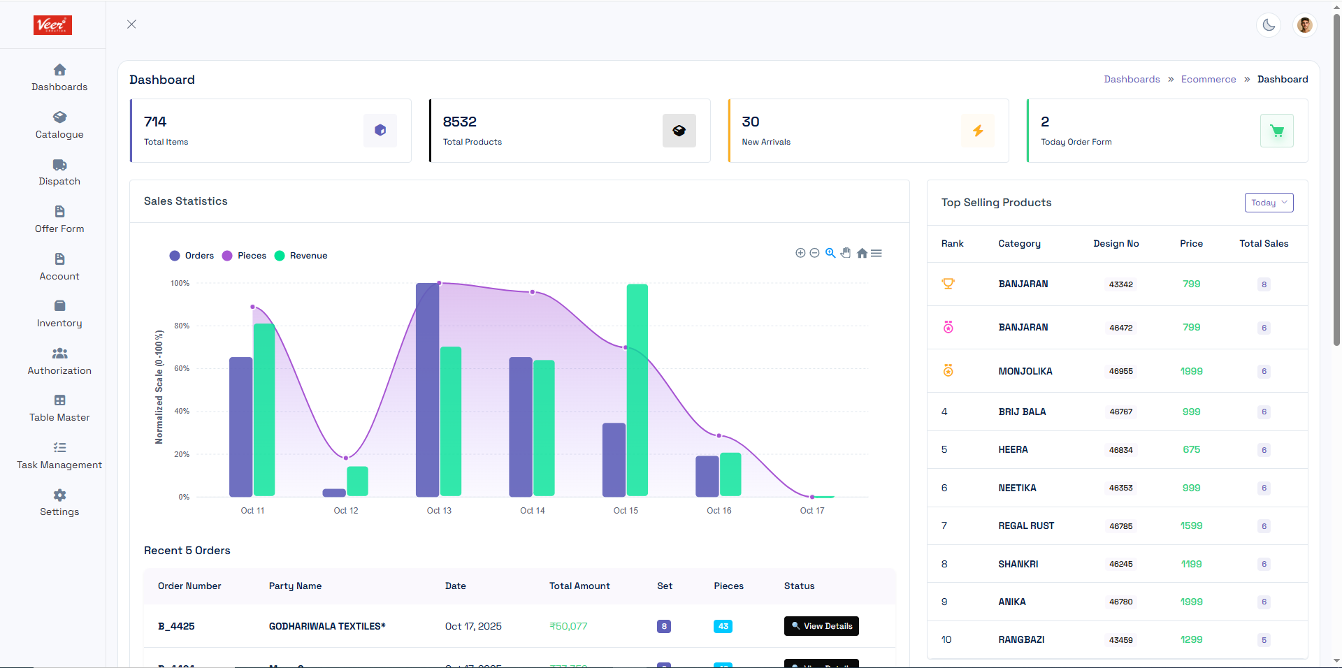 Before implementation, Veer Creation faced challenges managing increasing orders and manual stock tracking. The new system streamlined every workflow — from product listing to dispatch tracking — reducing human errors and saving hours of manual labor each day.