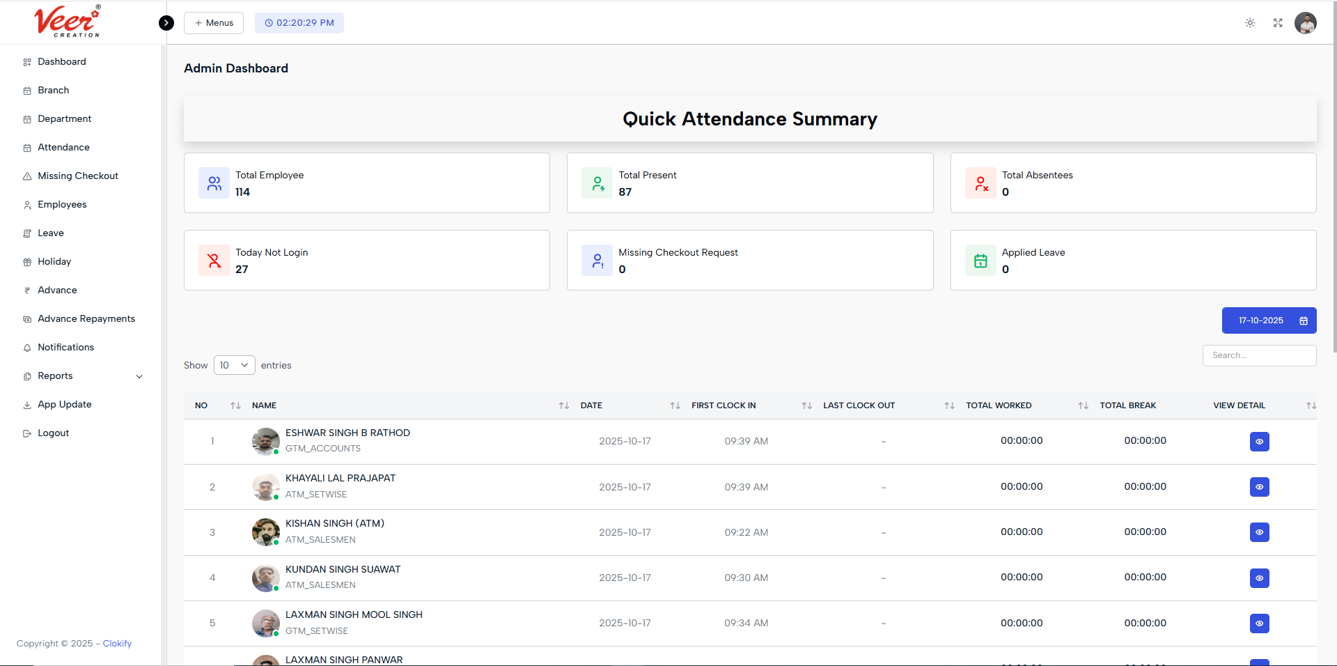 - ✅ Centralized dashboard for attendance, leave, and advance management.