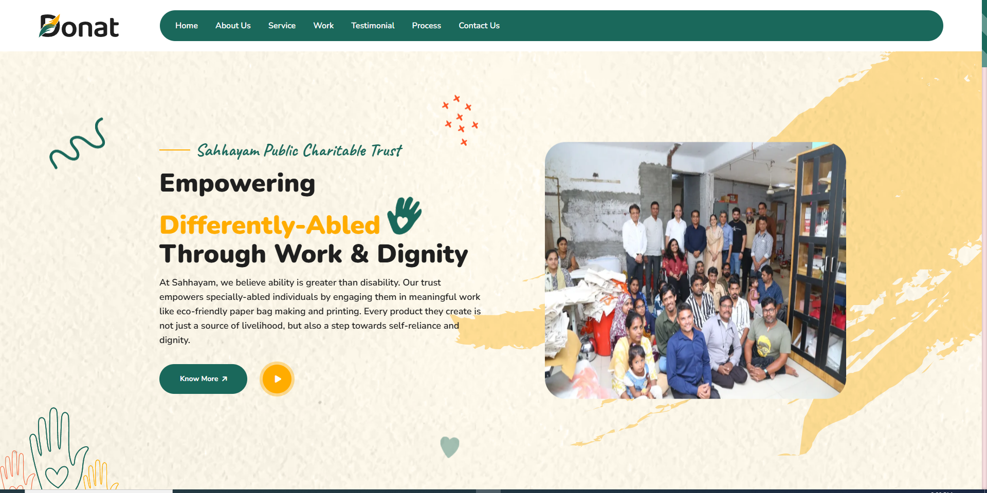 The Sahaayam website was designed to digitally represent the charitable trust and its eco-friendly initiatives. It allows visitors to learn about the trust, explore their handmade paper products, and place orders online — helping the disabled team earn and sustain their livelihood.